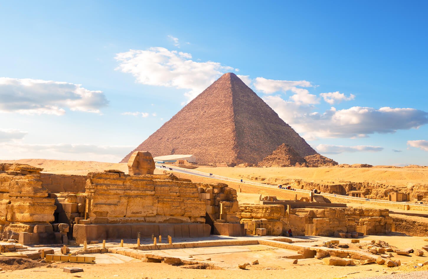 After breakfast, you will be picked up at the agreed-upon time and taken to see the Great Pyramids of Giza, the Sphinx, and the Valley Temple, which are all in the same ancient cemetery.